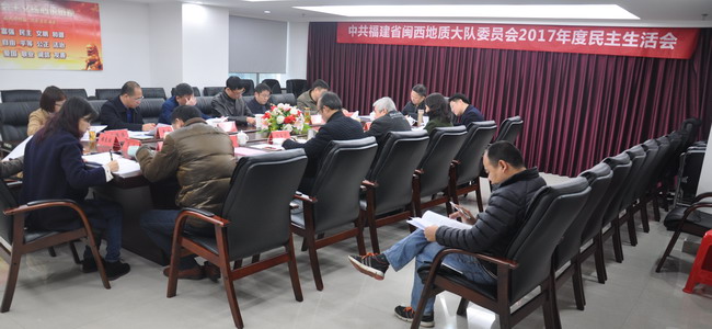 2月8日上午,福建省闽西地质大队党委召开2017年度党员领导干部民主生活会。队党委成员、队领导参加会议,省地矿局督导组组长、局党组成员、总工程师周珍琦同志,局人事处副处长林贵川同志到会指导。