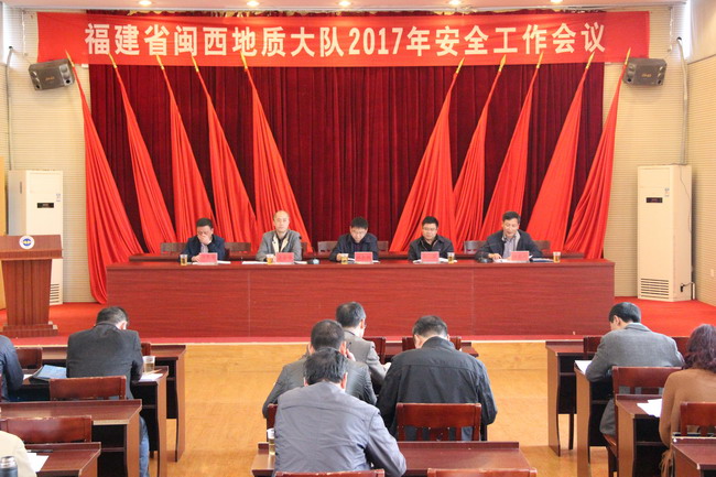 2017年3月24日,我队在三明队部召开2017年安全工作会议。队领导班子成员,队安委会成员,各科室、部门负责人,二级单位党政主要负责人,分管安全工作领导和专职安全员、部分派驻矿山人员、班组负责人共45人参加会议。会议由队纪委书记李金华同志主持。