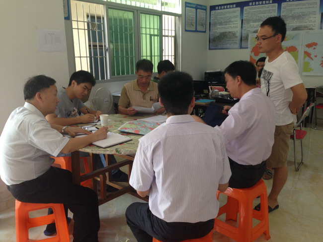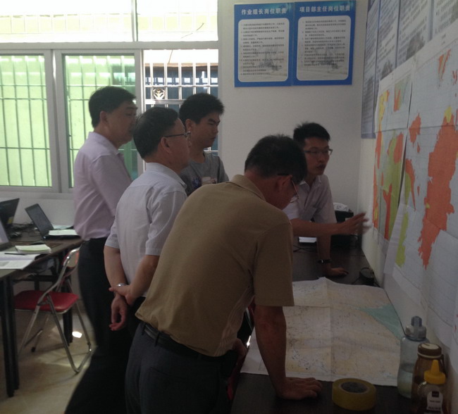 周珍琦总工一行首先听取了项目负责吴久芳关于项目基本情况、工作进展以及取得的阶段性成果的介绍后,对项目野外路线及剖面工作成果进行质量检查。专家组在充分肯定了项目工作的同时,也指出工作中存在的问题,特别指出野外工作要加强对宏观现象的观察。最后,周总工高度评价了项目组的标准化建设以及项目组成员的精神风貌。他指出,宁德区调项目作为沿海水域基础地质工作要做出特色,做好海岸带调查、海岛填图、火山岩解体等工作;但是项目区附近军事禁区较多,要注意协调好各方面工作。基础地质工作虽然辛苦,但是锻炼人;他告诫我们平时工作中要加强交流,边干边学,学以致用。