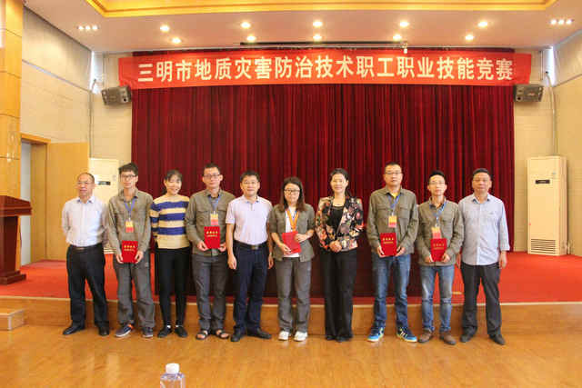 10月9日-12日,由福建省闽西地质大队、三明市总工会共同举办的三明市地质灾害防治技术职工职业技能竞赛在三明市展开,共有35名选手参加了此次竞赛,此次竞赛分理论知识考试、综合应用能力测试、突发地质灾害野外调绘及应急处置模拟考试三个项目,通过激烈角逐,最终产生前5名优秀选手,分别为:周云梅、王小平、刘明明、张火亮、陈国林。