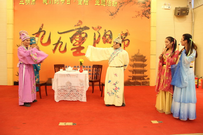 配乐诗朗诵《采桑子•重阳》、《重阳感怀》、《秋登兰山寄张五》、《重阳节敬老歌》,表达对重阳佳节的热爱和思念亲友的情愫;