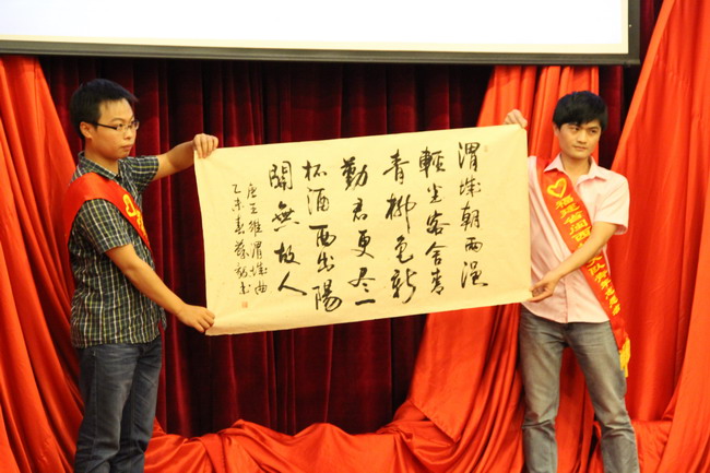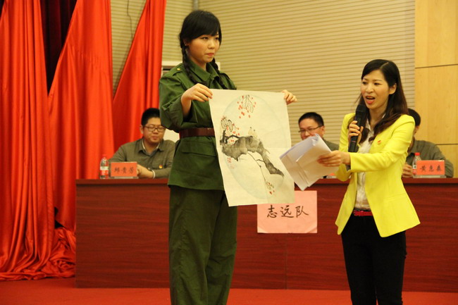 15位团员青年在竞赛中表演了古装剧《回乡偶书》、体现知青年代的舞台剧《悯农》,赢得观众的热烈掌声。测绘院团支部郑彬艳展现国画作品《相思》、实验室职工苏毅同志书写书法作品《渭城曲》。最后,反串剧《长恨歌》将现场气氛推向高潮。