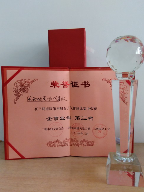 3月6日,三明市区第四届女子气排球赛闭幕,我队代表队获企事业组季军。此次比赛由市妇联、市直机关党工委和市总工会联合举办,共35支队伍参加比赛。