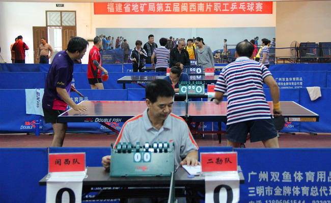 2014年10月16日至17日,福建省地矿局第五届闽西南片职工乒乓球赛在三明举行,共有来自闽西南片7个地勘单位的7支乒乓球男队和6支乒乓球女队参加。省地矿局副局长郑荣富、局女工副主任林莉等出席运动会开幕式。