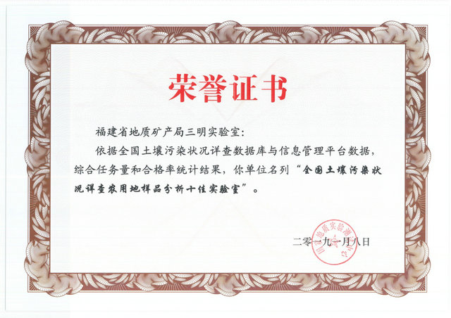 会上,凭借“综合任务量和合格率”方面的出色成绩,三明实验室荣获“全国土壤污染状况详查农用地样品分析十佳实验室”荣誉证书,可喜可贺!