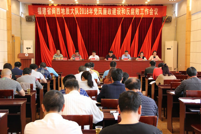 2018年4月12日,福建省闽西地质大队2018年党风廉政建设和反腐败工作会议在三明召开,队领导、党委委员、纪委委员,党支部书记、纪检委员,副科级以上领导干部,部门负责人,三明队部财务人员,队控股经营单位负责人和局聘党风廉政建设监督员等68人参会。