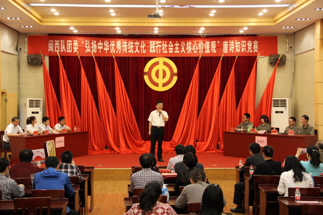4月1日晚,正值召开福建省闽西地质大队八届五次职代会期间,队团委在三明举办以“弘扬中华优秀传统文化,践行社会主义核心价值观”为主题的唐诗知识竞赛,共有近50位团员青年参加活动。福建省地矿局郑荣富副局长应邀莅临现场指导,队领导及职代会职工代表也亲临现场为团员青年加油鼓劲。