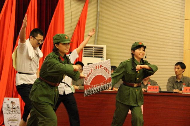 15位团员青年在竞赛中表演了古装剧《回乡偶书》、体现知青年代的舞台剧《悯农》,赢得观众的热烈掌声。测绘院团支部郑彬艳展现国画作品《相思》、实验室职工苏毅同志书写书法作品《渭城曲》。最后,反串剧《长恨歌》将现场气氛推向高潮。