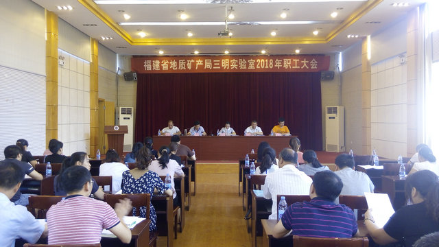 2018年5月26日上午8点15分,福建省地质矿产局三明实验室2018年度职工大会在队部食堂三楼会议室隆重召开。大队工会副主席万发泉同志莅临指导了会议。